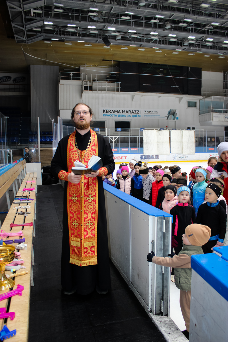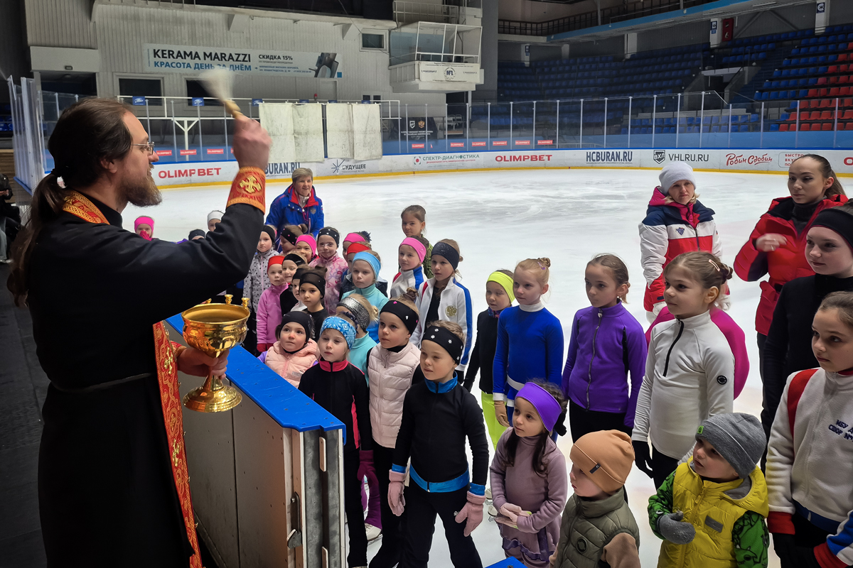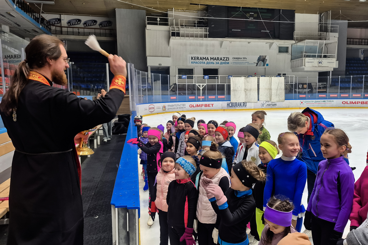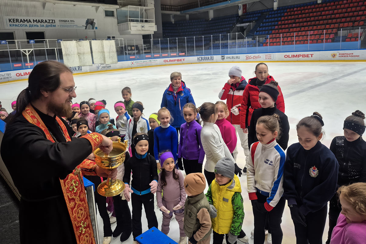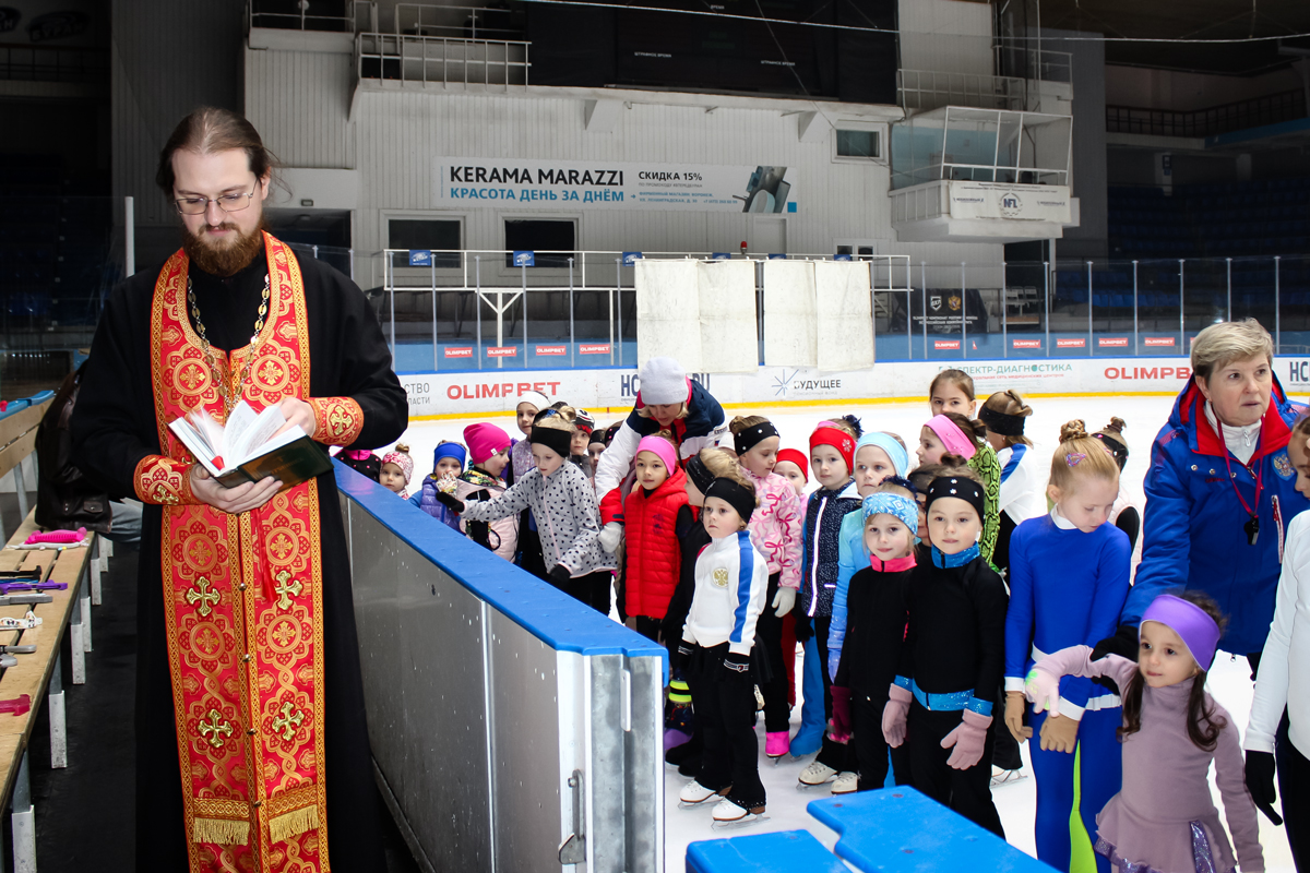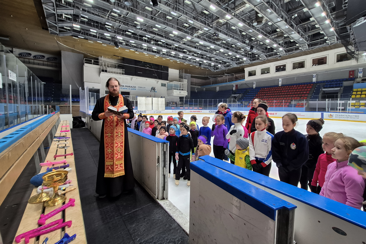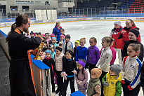 Священнослужитель совершил молебен перед началом всякого доброго дела и окропил Святой водой юных воспитанников детско-юношеской спортивной школы №24 по фигурному катанию, которым в скором времени предстоят ответственные соревнования.