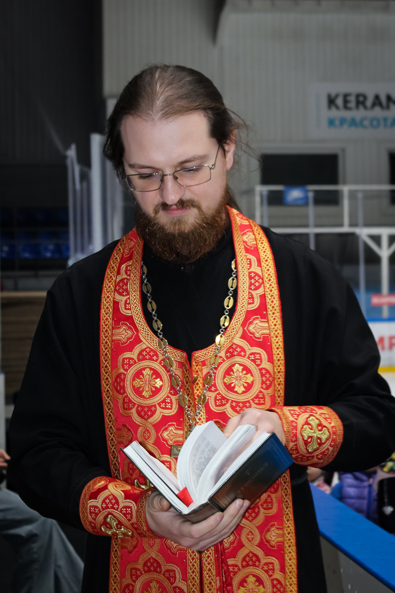 Отец Николай обратился к фигуристам и их наставникам со словом проповеди, поздравил со светлым праздником Пасхи и пожелал помощи Божией и блестящих свершений.