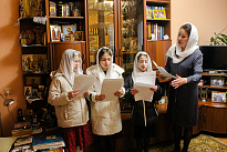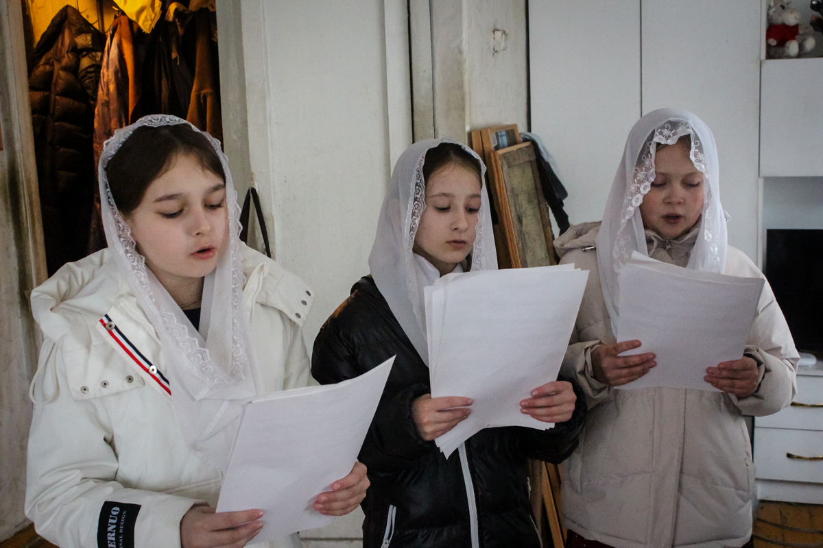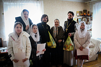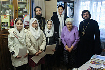 Воспитанницы Воскресной школы под руководством регента Елены Клименко воспели для пожилых прихожан пасхальные песнопения. Особенно торжественно звучал тропарь: «Христос воскресе из мертвых, смертию смерть поправ, и сущим во гробех живот даровав», словами которого утверждается победа Христа над смертью и надежда на жизнь вечную.