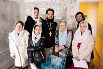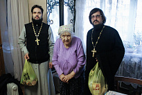 По доброй традиции священнослужители преподнесли пожилым людям продукты и пасхальные яйца – символ гроба и вместе с тем – символ жизни. Окрашенное красной краской, оно знаменует Воскресение Христово и наше Искупление «драгоценною Кровию Христа, как непорочного и чистого Агнца» (1Пет.1:18-19).