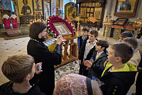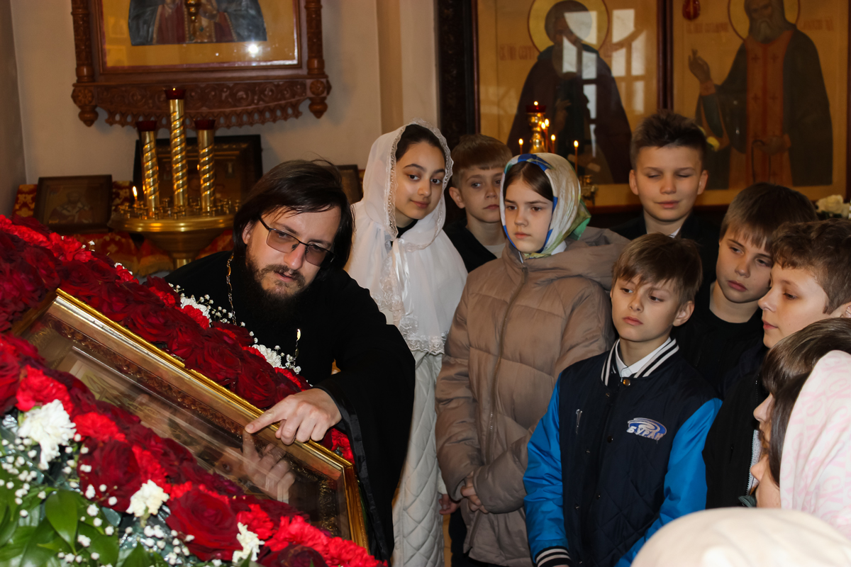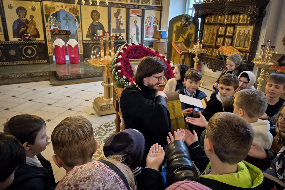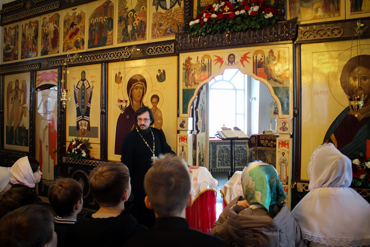 Школьники, в рамках изучения модуля Основы православной культуры познакомились с устройством храма. Иерей Виктор Соломахин рассказал ребятам об алтаре, иконостасе, праздничной иконе, а также о пасхальных традициях.