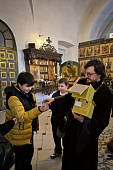 В завершении экскурсии дети поставили свечи, испросили помощи Божией в учении, а отец Виктор преподнес им подарки – шоколадные пасхальные яйца.