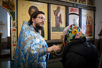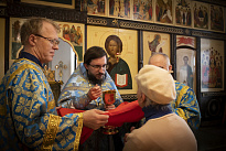 После отпуста литургии отец Виктор поздравил предстоящих с праздником и обратился со словом проповеди.