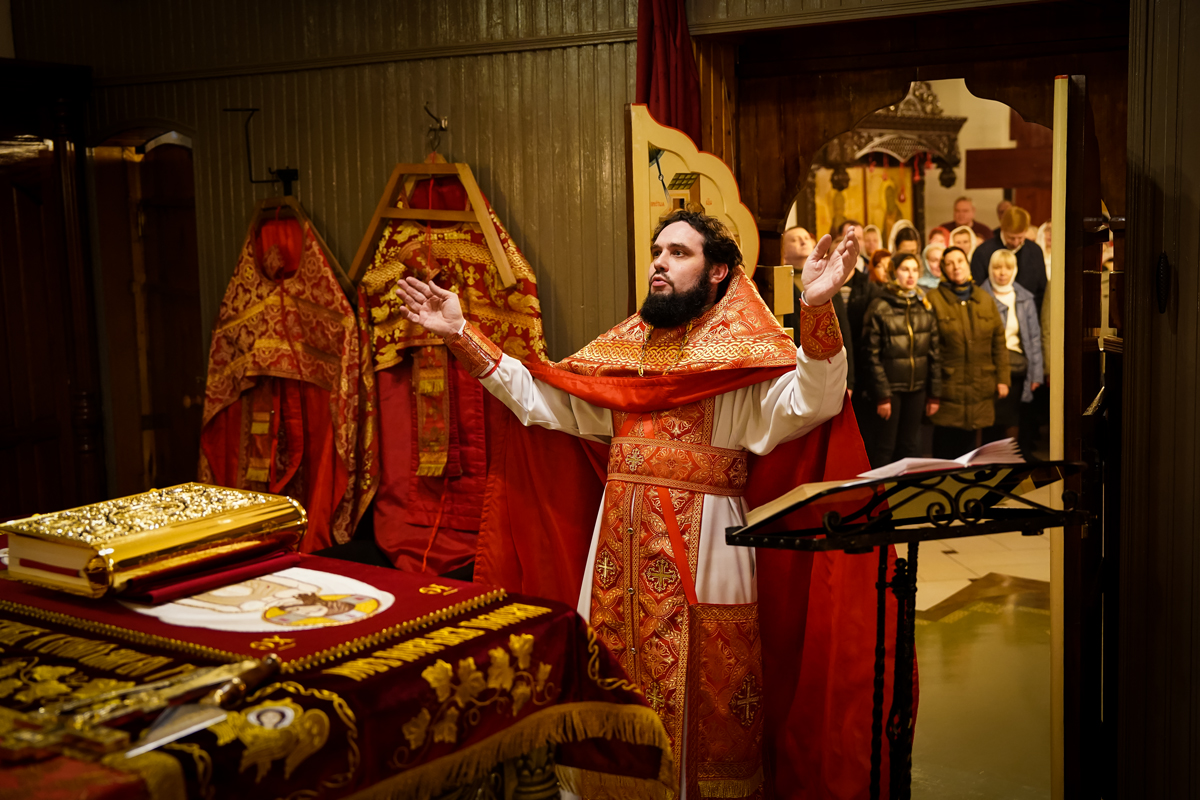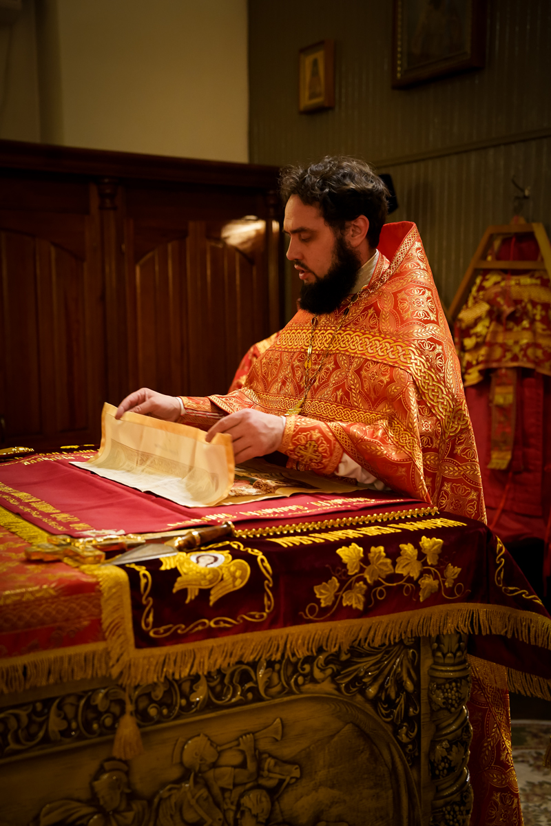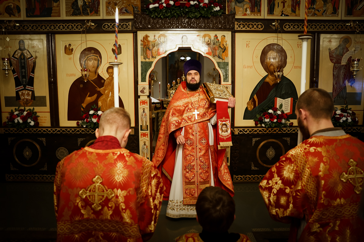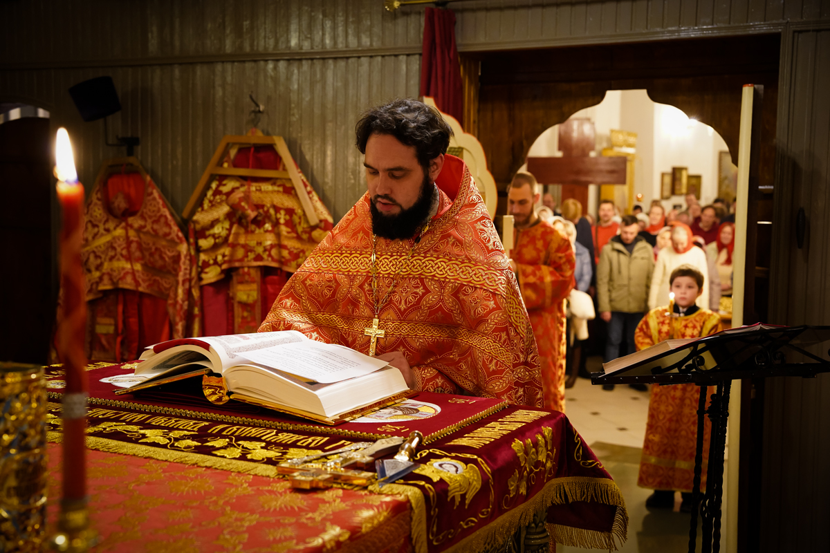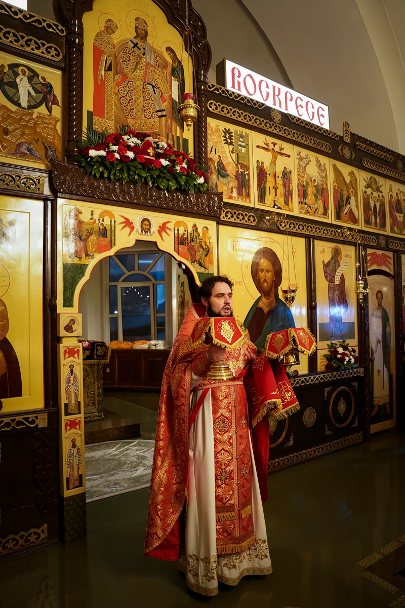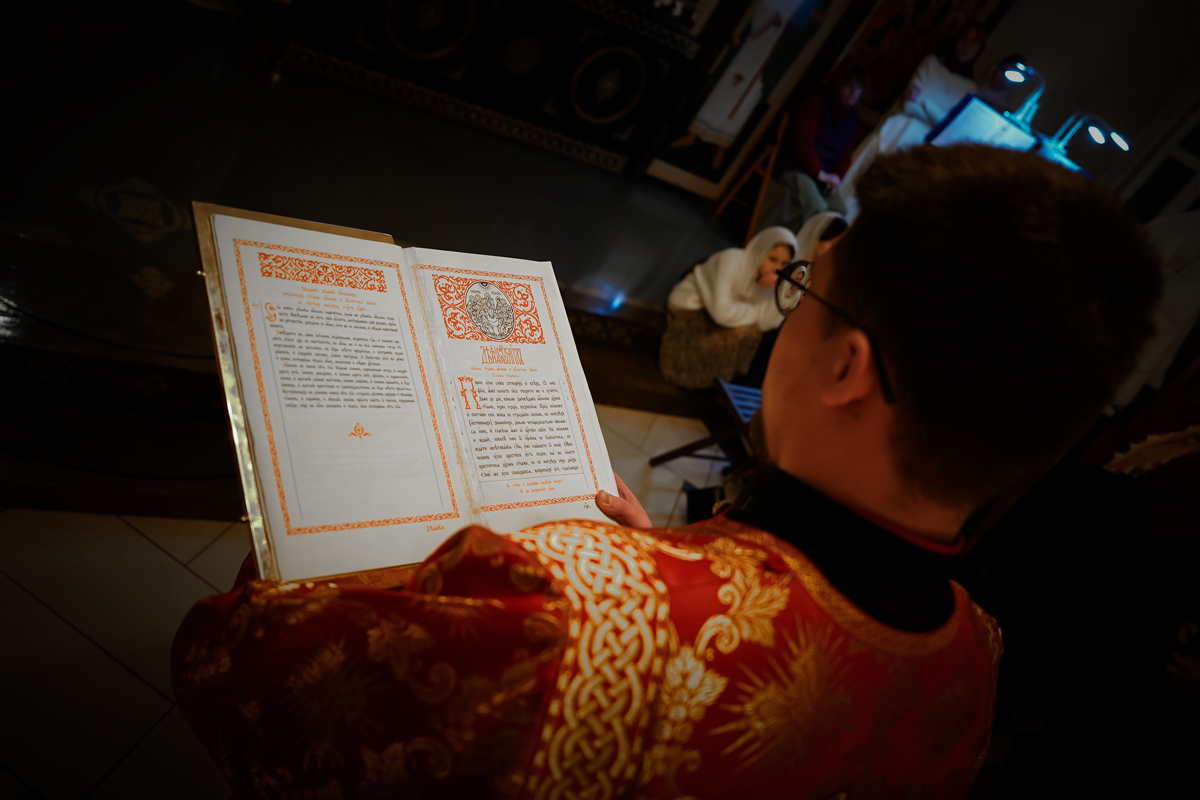 По старинной церковной традиции, иерей Михаил читал Евангелие на древнегреческом и церковнославянском языках.