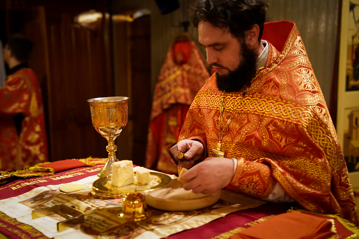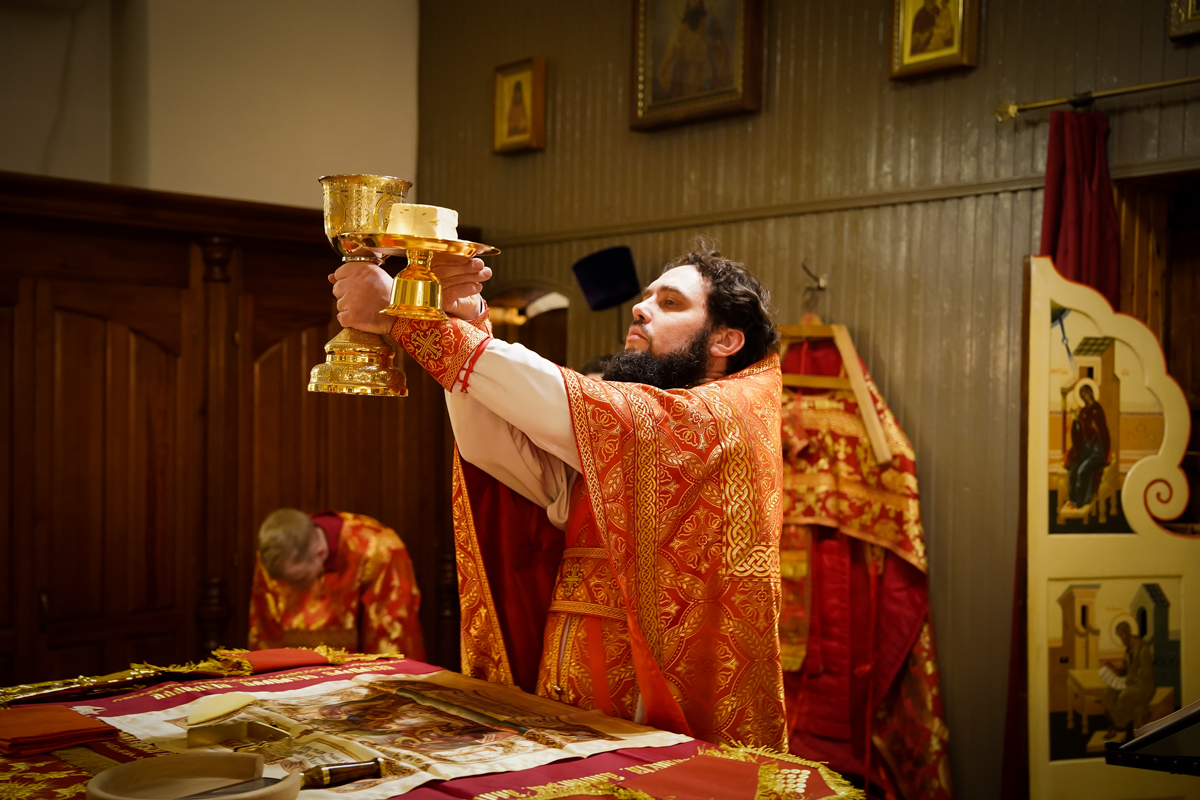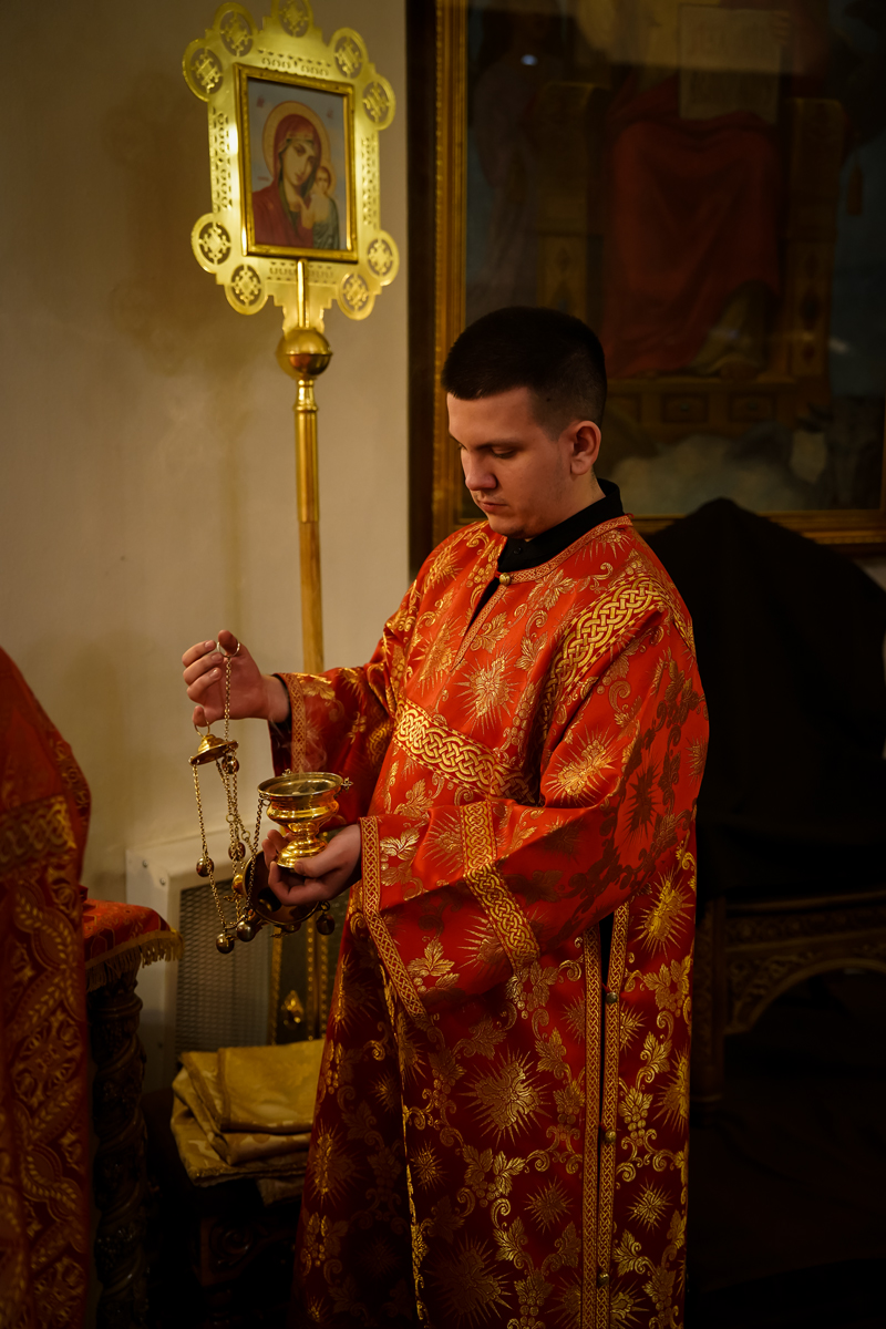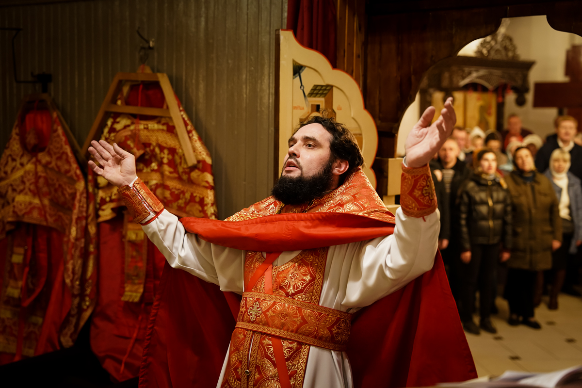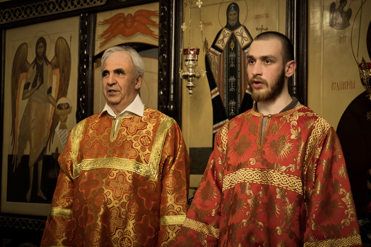 По старинной церковной традиции, иерей Михаил читал Евангелие на древнегреческом и церковнославянском языках.