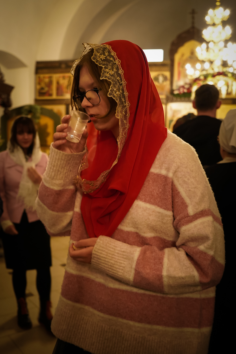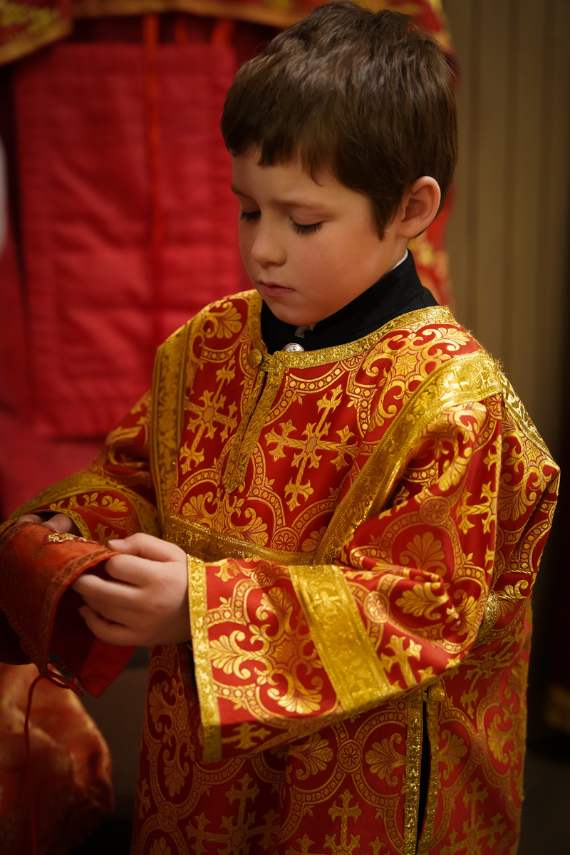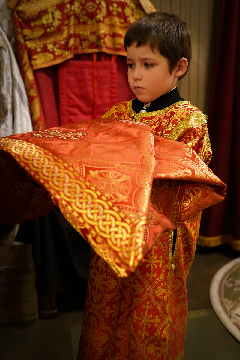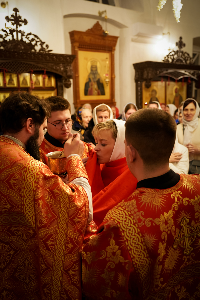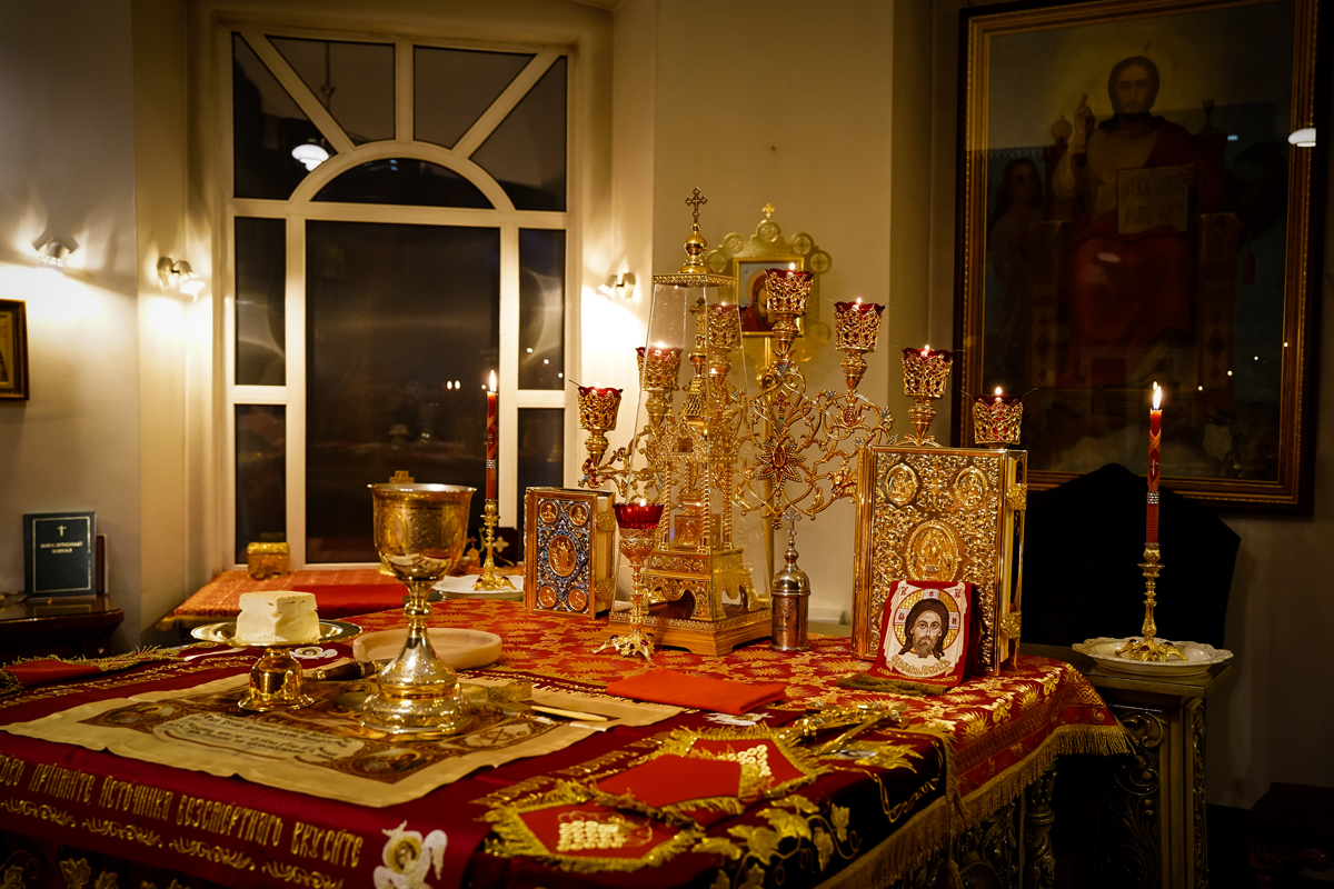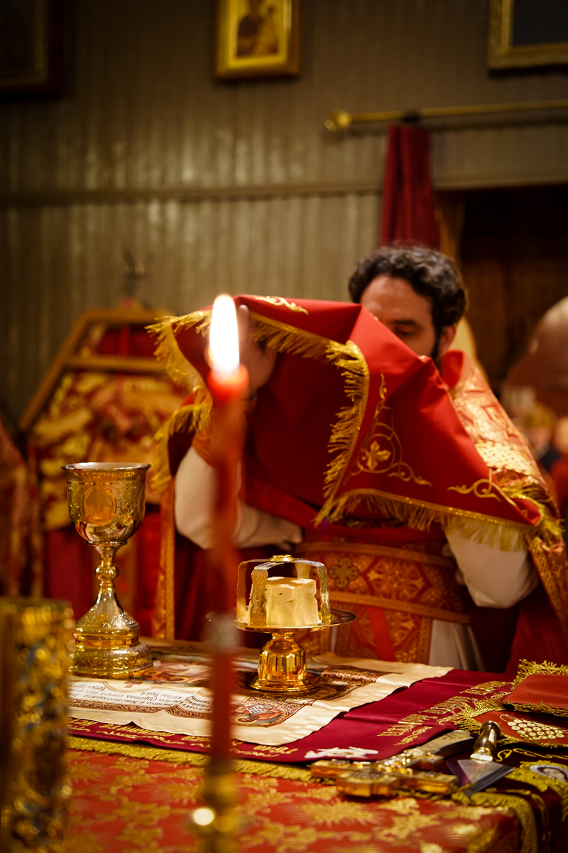 По старинной церковной традиции, иерей Михаил читал Евангелие на древнегреческом и церковнославянском языках.