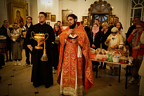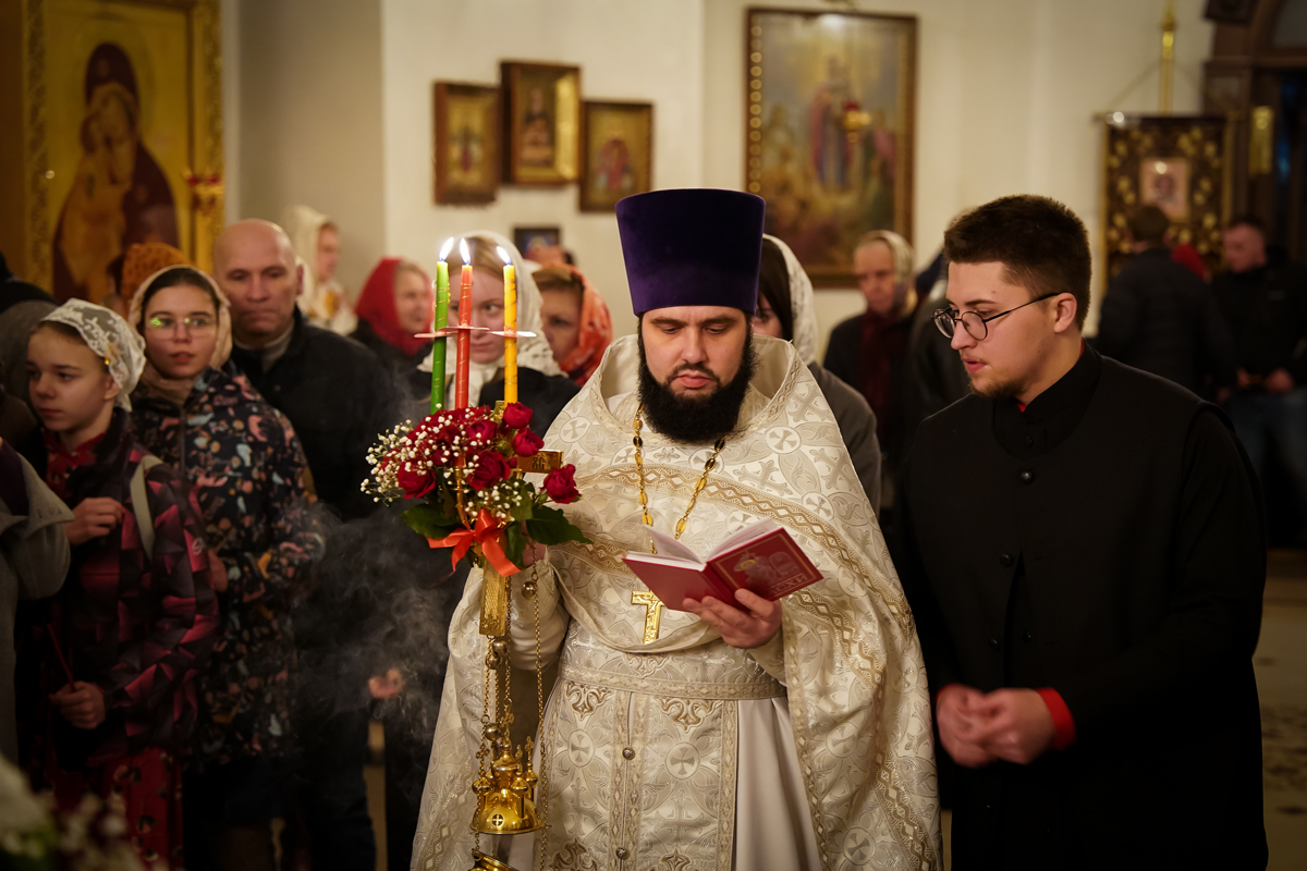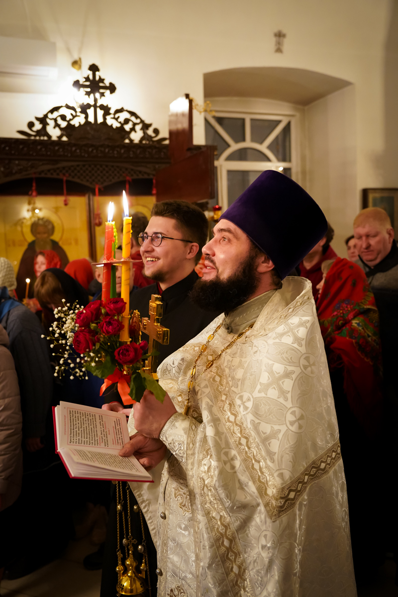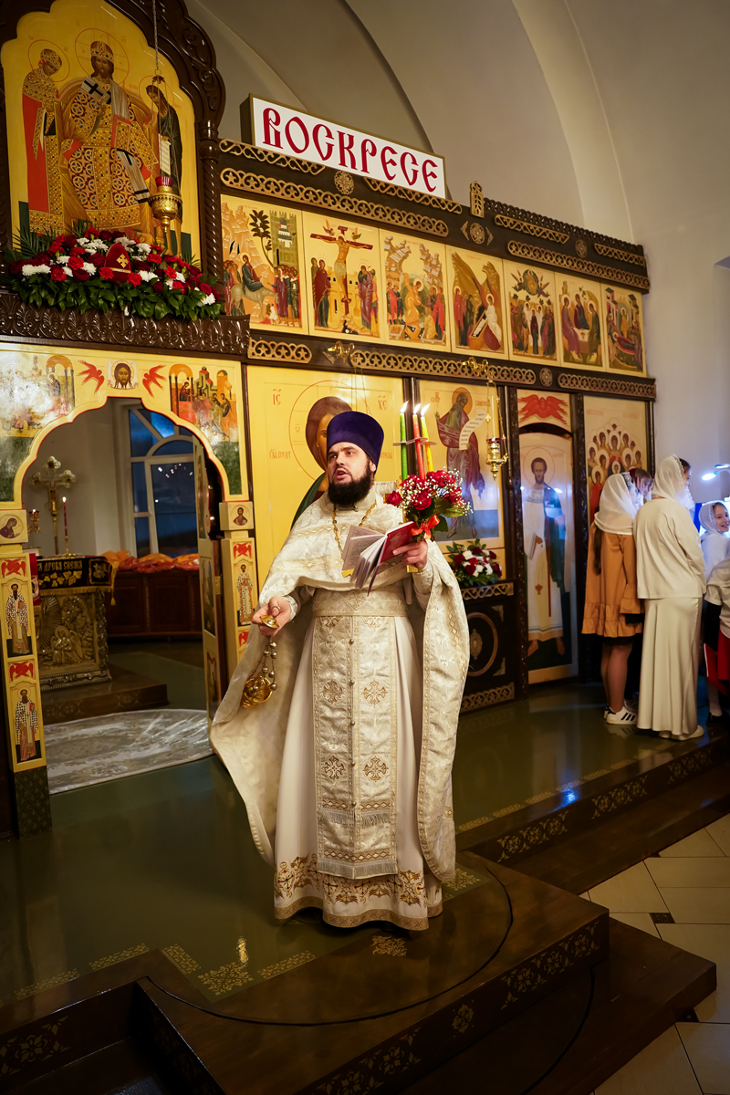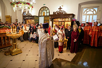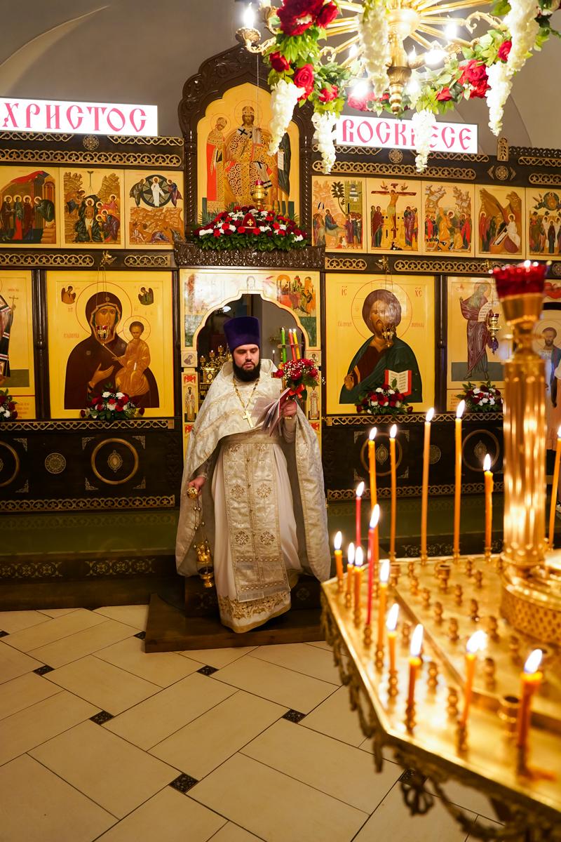 Торжественное богослужение возглавил настоятель храма иерей Михаил Семенов. Его Преподобию сослужили клирики храма иерей Виктор Соломахин и иерей Николай Фурсов.
