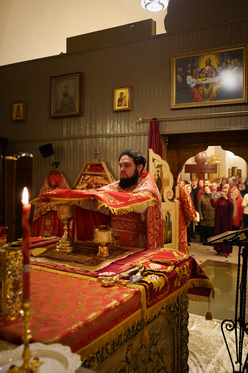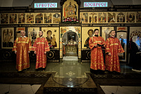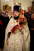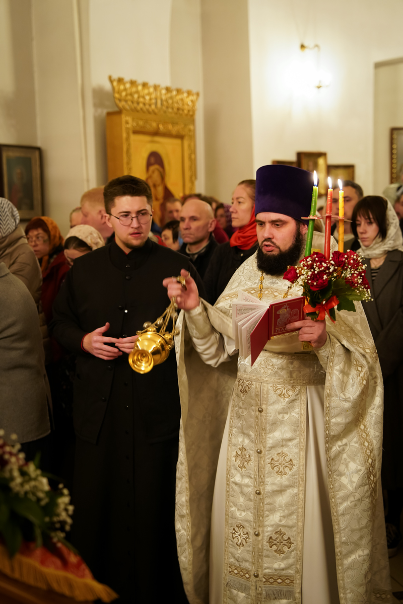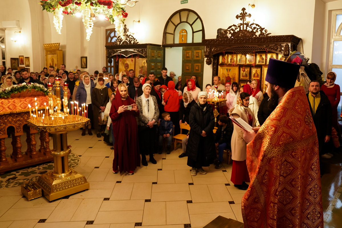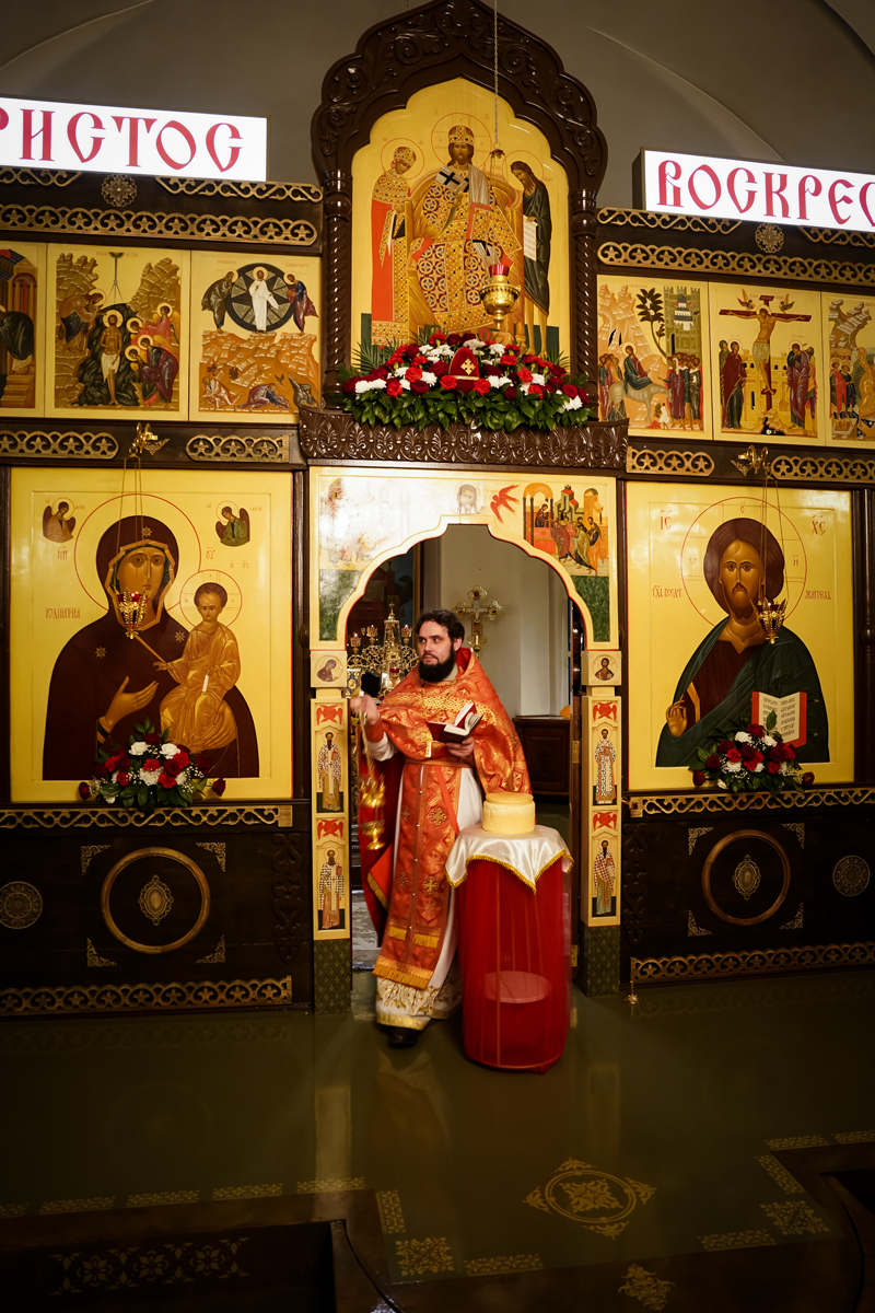 Торжественное богослужение возглавил настоятель храма иерей Михаил Семенов. Его Преподобию сослужили клирики храма иерей Виктор Соломахин и иерей Николай Фурсов.