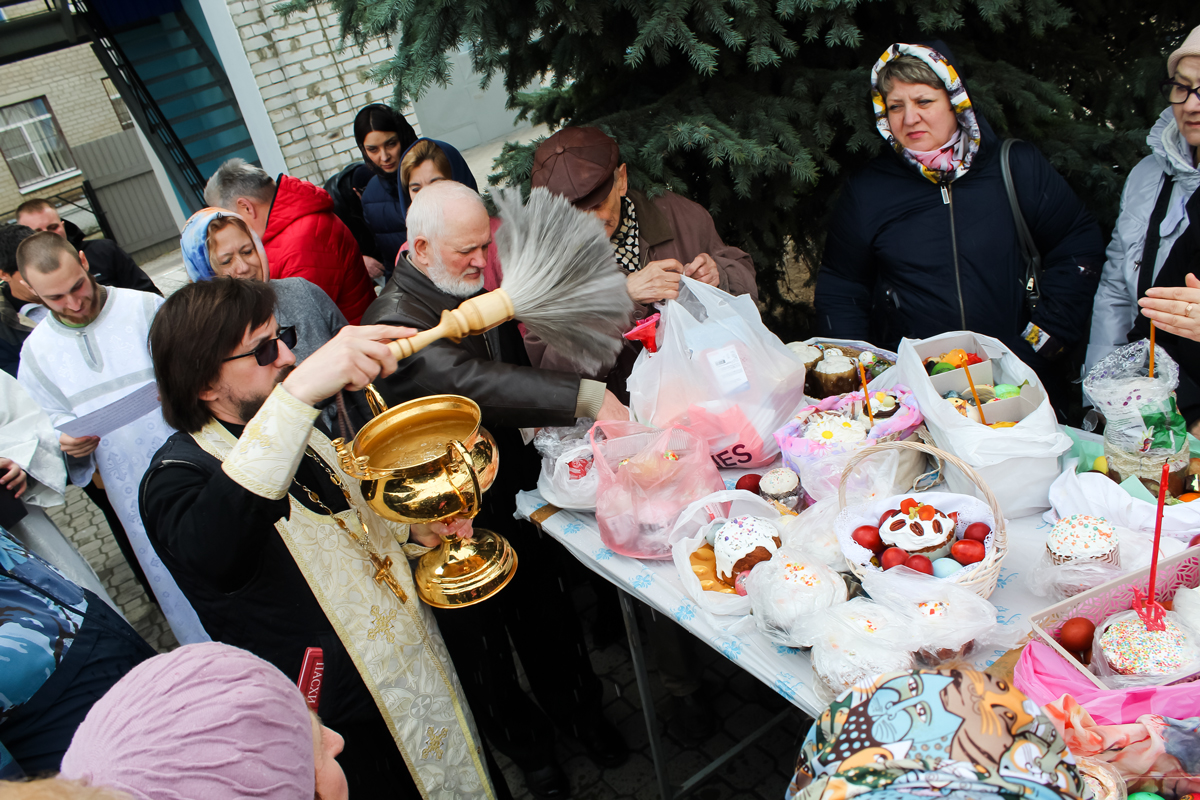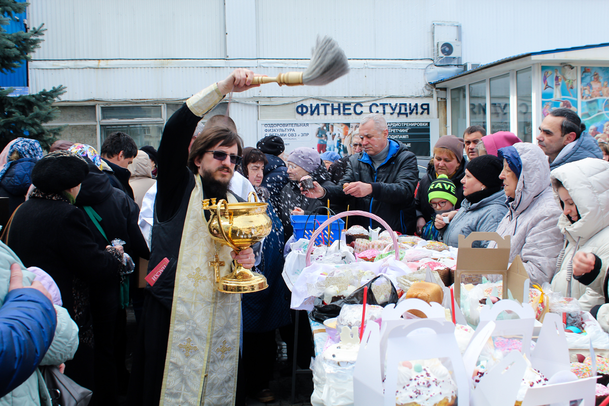11 апреля, в Великую Субботу, по окончании Божественной литургии на прихрамовой территории было совершено освящение куличей и пасох.